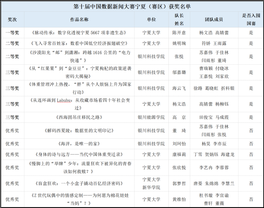 第十届中国数据新闻大赛暨首届AIGC应用大赛(宁夏)赛区复赛入围名单公示